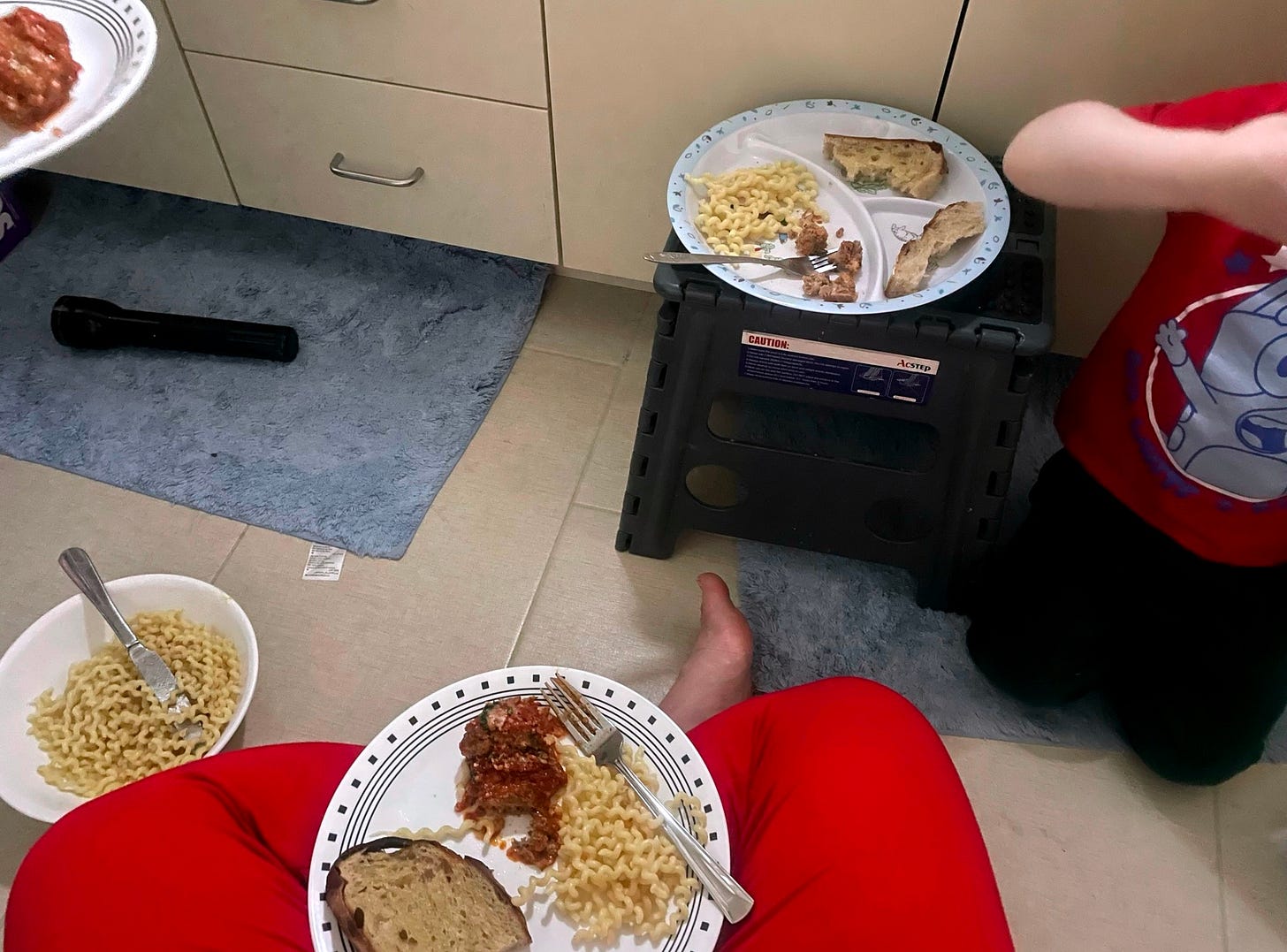 Last weekend, I ate dinner on the floor of the bathroom with my family.